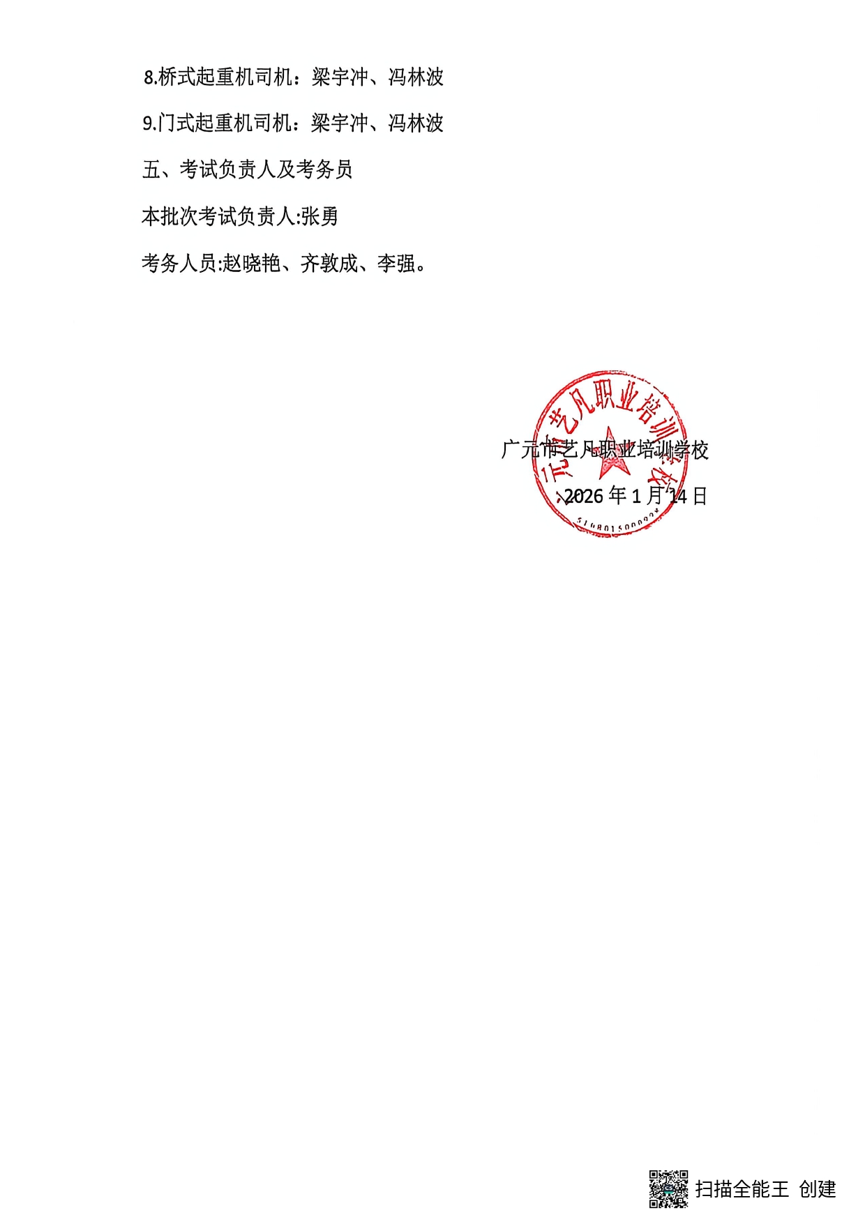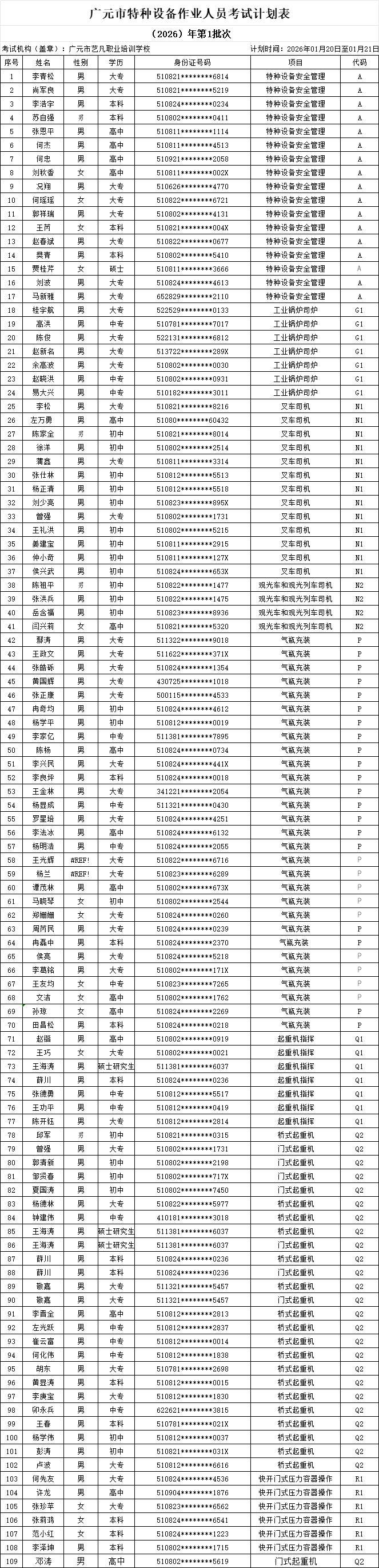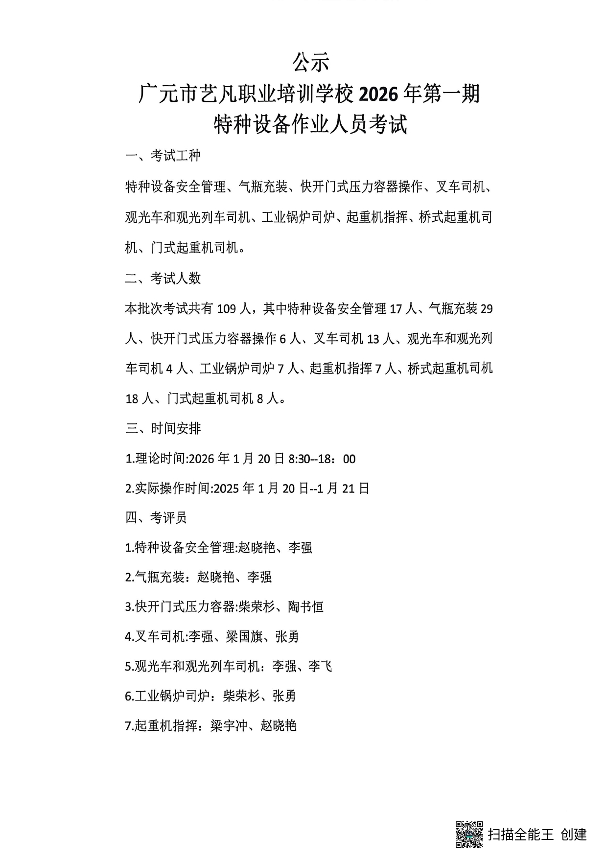 2026年第1期特种设备作业人员考试计划安排及人员名单